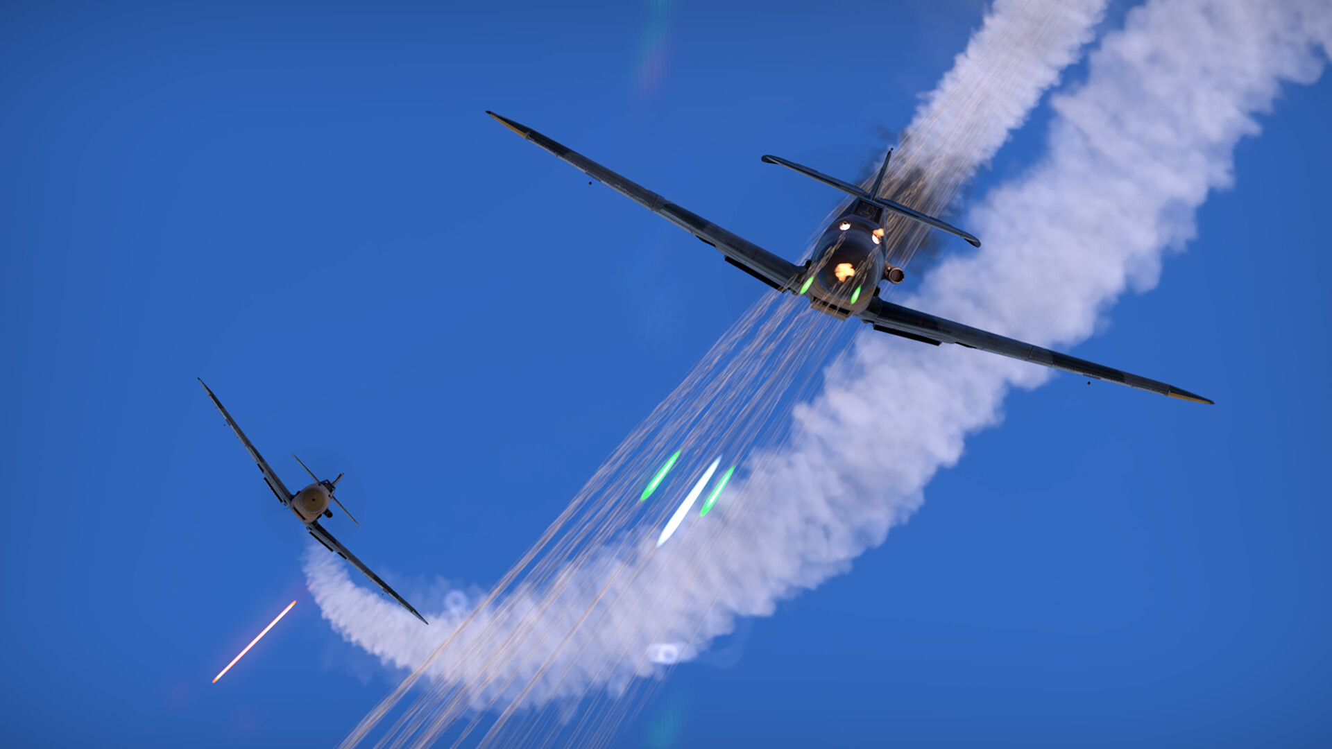 P-51s may be quite annoying enemies if flown by experienced pilots. Though Bf 109s are fast, pretty much all P-51s are still quicker. They will extend away and make passes on you when on a big enough separation. Climb when they do this to not waste time. Be careful with their .50 cals in head-on attacks. Mustangs have enough ammo to start spraying them at a long distance and for prolonged periods, and a few hits from them will cripple your speed and agility, providing them an upper hand. By the way, beware of P-51's agility at high speeds. Above ~400 km/h Mustangs can out-turn the Bf 109. If a P-51 dives away from you, do not follow them. Mustangs are amazing in a dive and have high top speed, you will not catch one in a dive. Bf 109 bleeds more speed when diving, this allows them to equalise the energy or outright get an advantage. Better climb and watch out for other enemies.