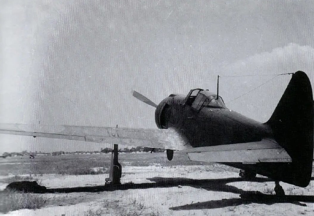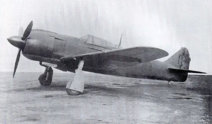 This snapshot, taken from a different angle, shows the same Type 5 Fighter I Model Otsu as in the previous header images. The switch to an air-cooled engine resulted in increased aerodynamic drag, which negatively impacted the aircraft’s top speed. Despite the new engine producing 50 more horsepower, the maximum speed dropped by 30 km/h, reaching only 580 km/h, compared to the Type 3 Fighter II Model Kai.