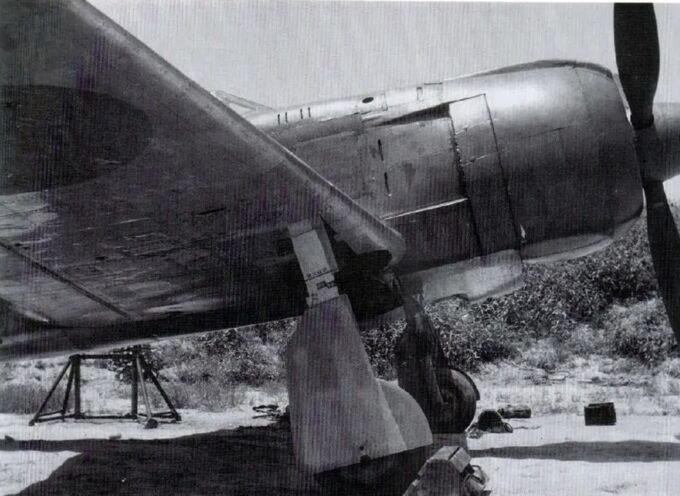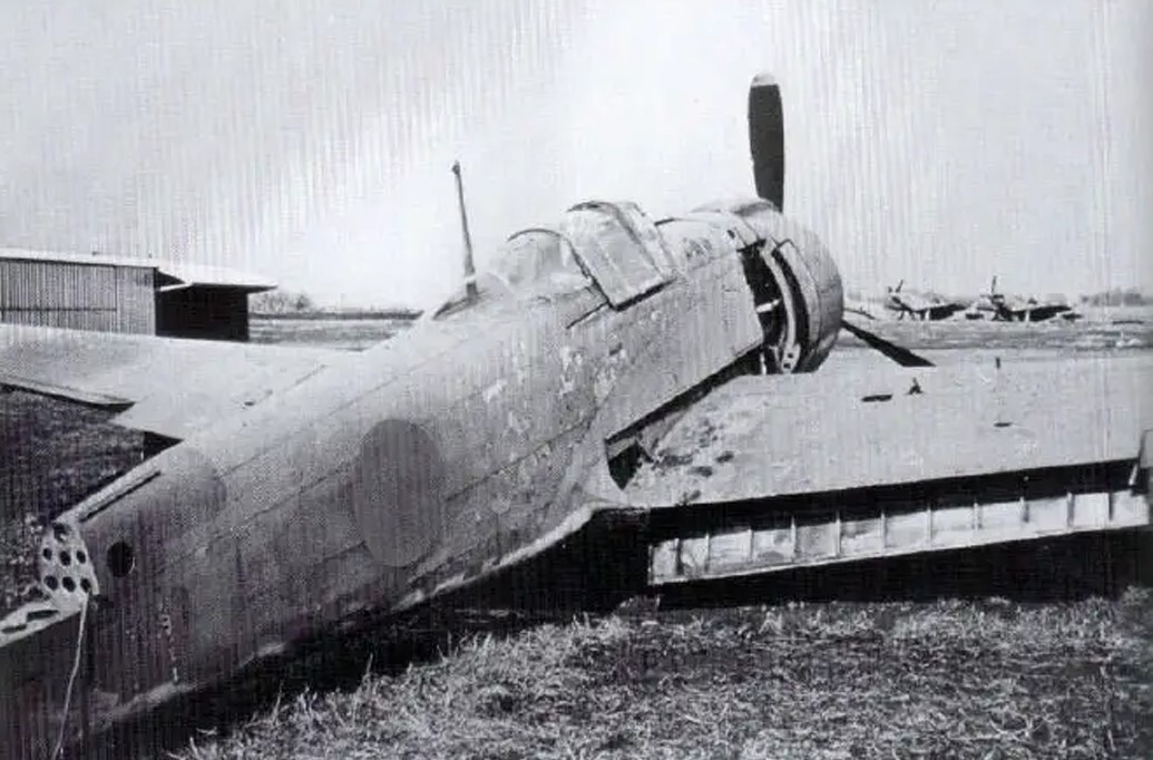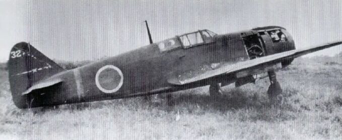 A Type 5 Fighter I Model Ko (“22”), previously belonging to the 244th Flight Regiment, was abandoned at Chofu Airfield and remained there until the end of the war, similar to the “32” aircraft as seen in the picture above. Judging by its damaged state, this aircraft was likely decommissioned due to an accident.