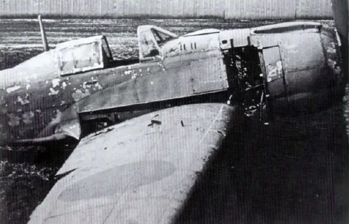 The plane is in poor condition, with missing parts such as the tail, wing root fillets, and spinner. However, this damage allowed for some insight into the internal structure of the aircraft.