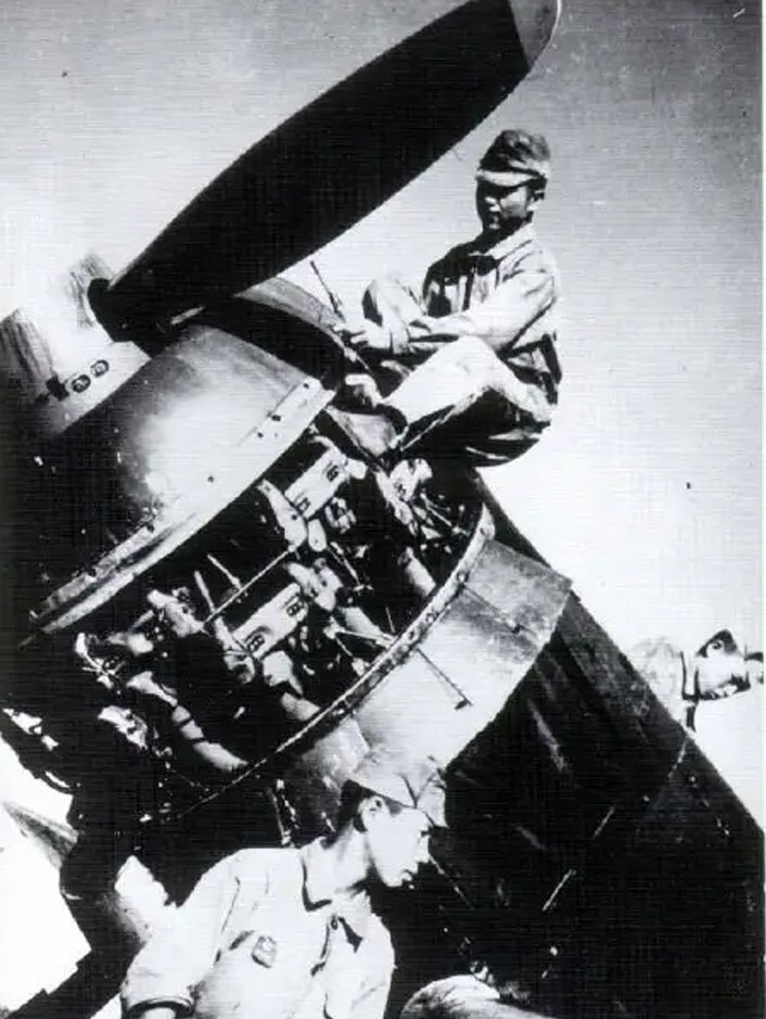 Maintenance on the Ha-112-II Engine of a Type 5 Fighter Model Otsu