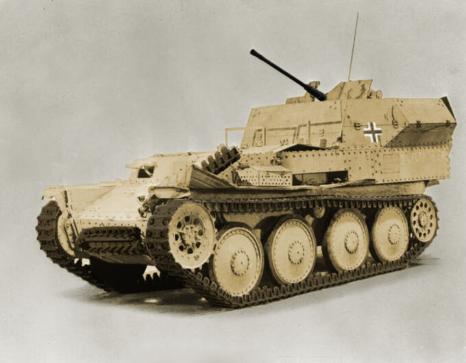 The Flakpanzer 38 (2cm) Ausf. L was the first series-produced anti-aircraft tank for the German Wehrmacht during World War II. Manufactured between late 1943 and February 1944, with a total of 141 vehicles, it was used by some motorized units as an escort vehicle for armored units in defensive operations from 1944 onward.