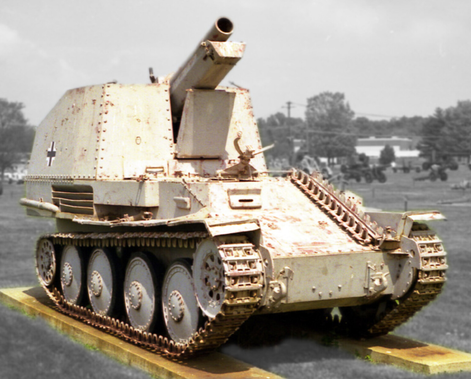 Originally designed for the Eastern Front, the vehicle was briefly delivered to the German Afrika Korps. The British troops were so impressed by the Marder III that they believed it was an 8.8 cm anti-aircraft gun. It carried 30 rounds of ammunition. 344 vehicles were built from April to November 1942.