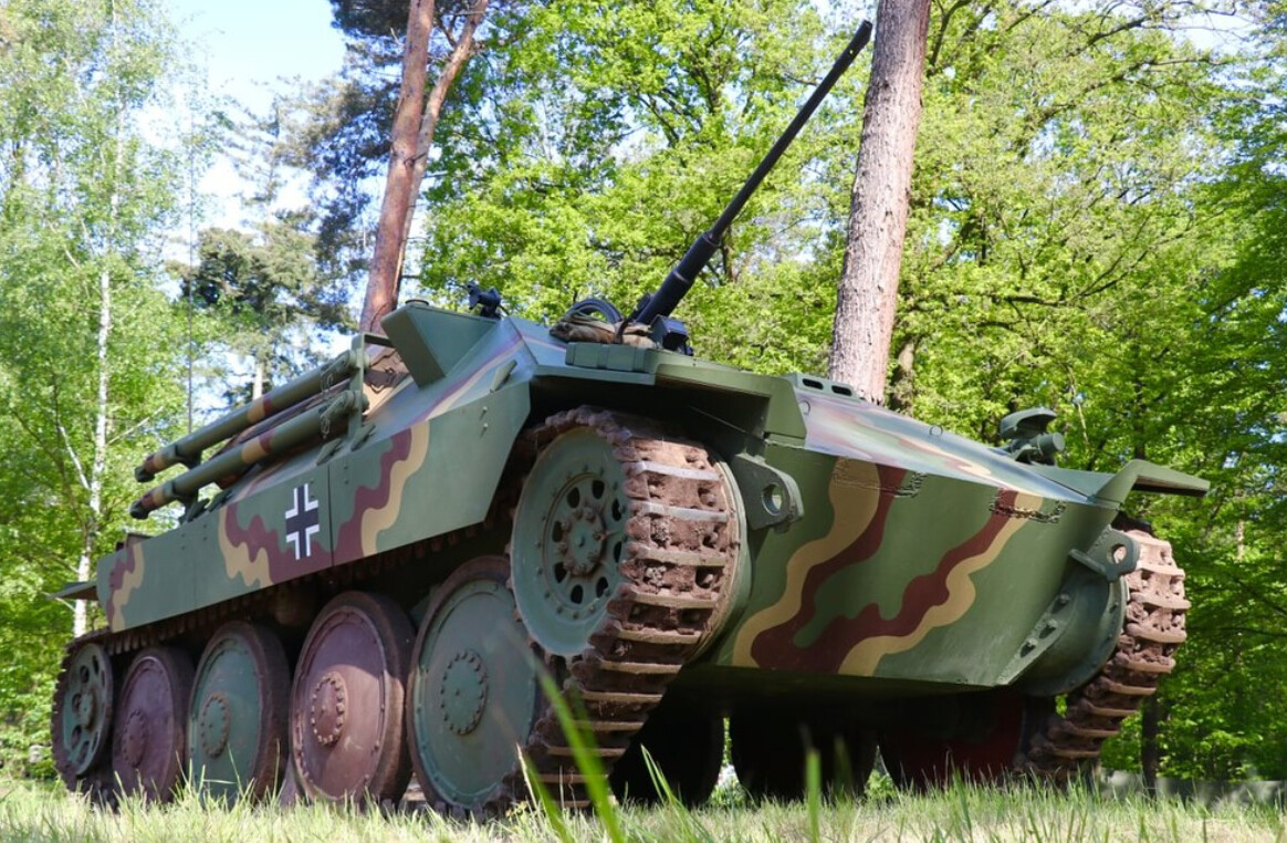 The Flammpanzer 38(t) was a modification of the Jagdpanzer 38(t) in which the 7.5-ton anti-tank gun was replaced by a “Köbe-Gerät” flamethrower. The ammunition depot was also replaced by a 700-liter fuel oil tank, giving the flamethrower a range of 50 meters. With the help of so-called “ignition cartridges” (empty cartridges used to ignite the oil explosively), a maximum range of 60 meters could be achieved. The Flammpanzer retained its four-man crew, who now served as commander, driver, radio operator, and flamethrower operator. 20 Jagdpanzer Hetzer tanks were primarily converted to Flammpanzer 38(t) tanks before the Ardennes Occupation, where they were deployed.