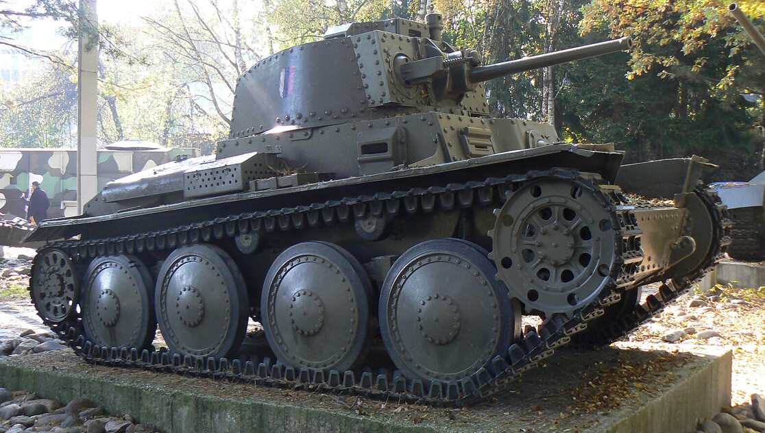 The LT vz.38 was a light tank originally from Czechoslovakia and built by Škoda and ČKD. A total of at least 6,919 examples were built, including pre-war and licensed models in every imaginable configuration. Following the German occupation of Czechoslovakia in 1939, the German Reich captured plans, production equipment, and some examples of the LT vz.38 that had not yet been deployed in the Czech army and renamed them the Pz. 38(t). Later, a licensed version, along with some examples, was sold to Sweden, who renamed it the Stridsvagn m/41 and slightly modified it. The Pz. 38(t) was used by Germany throughout World War II and also influenced several other tank designs, including the German E-series.