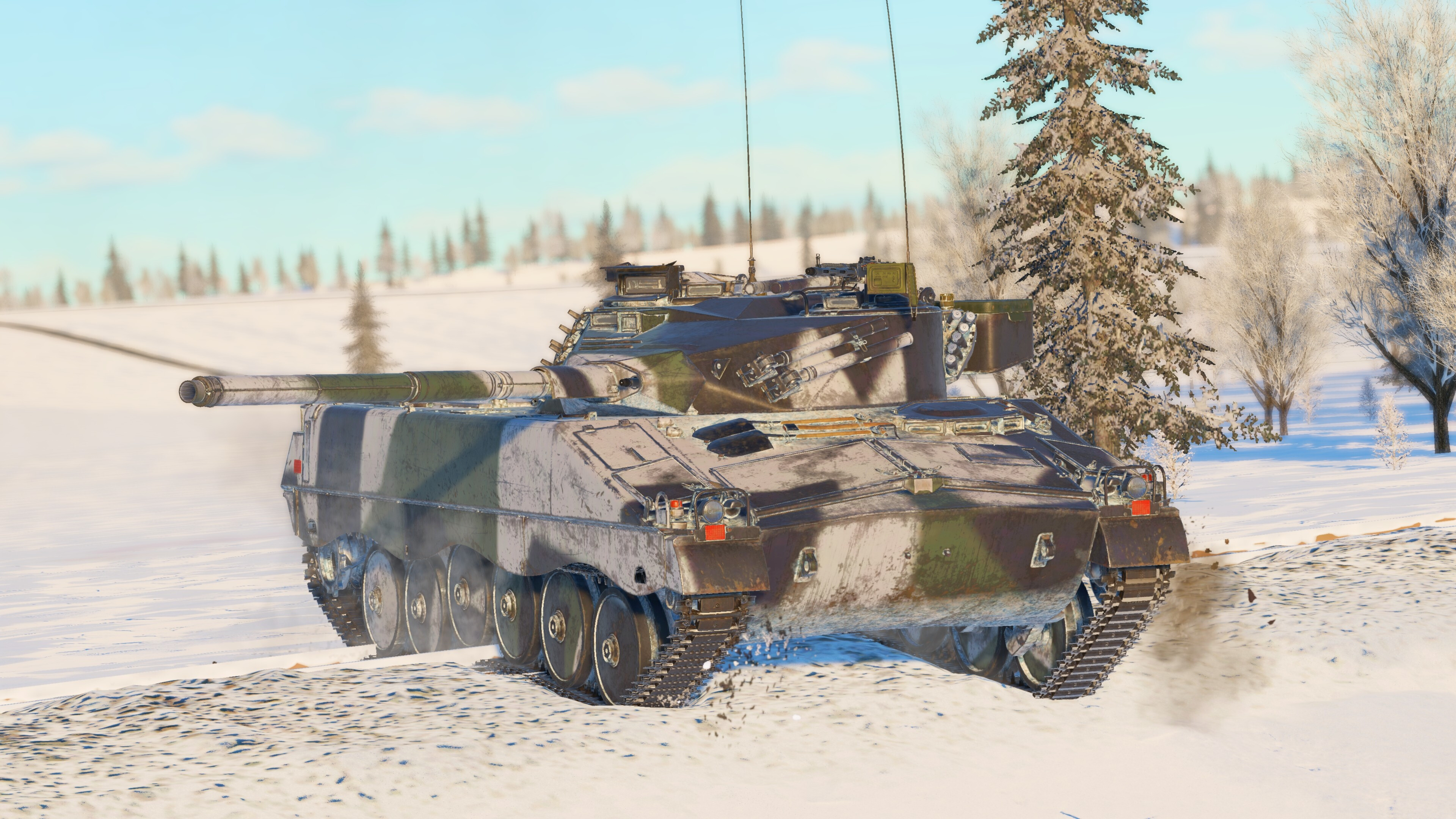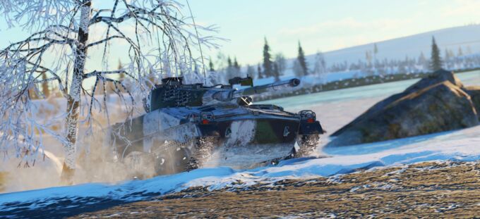 The recommended way of playing the Ikv 91 is to use it as a flanker and sniper at medium ranges. How exactly this is done can differ from map to map, but in general it is smart to move towards the outside flank of a key position or area and scout enemies that are moving towards the cap or other areas. Once positioned in a comfortable and rather safe location, it is important to evaluate and determine what vehicles are safe or important to engage. That is not only due to the rather low shell velocity but also to prevent especially dangerous enemies from returning fire. It is best to avoid shooting at targets that are moving or partially behind cover while prioritizing enemies with a laser rangefinder or high-velocity ammunition. Especially dangerous enemies to take note of are artillery tanks such as the PzH 2000 and the PLZ05, as well as other light and medium tanks equipped with a laser rangefinder such as the OF-40, the CLOVIS which can be found in the German and French trees, the Type 69 or the M41D. However, the strong HEATFS shell allows this tank to effectively engage and destroy almost any vehicle it may encounter, even in an up-tier.