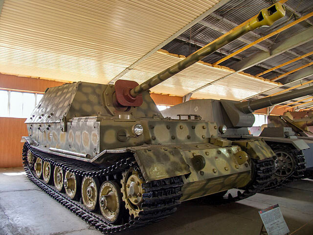 Two other companies in possession of a combined 28 Elefants had been sent to reinforce Army Group South’s positions near Tarnopol during 1944. The Elefants proved effective at blunting Soviet attacks, but there was a constant struggle to keep the Elefants in service due to a lack of recovery vehicles, which were so desperately needed by the Elefants. Elefants fought on the Eastern Front through 1944, albeit with declining numbers. In the autumn of 1944, an Elefant claimed the destruction of a T-34 from a range of 4500 m. The last Elefants are believed to have fought south of Berlin during 1945. The Elefant was a formidable opponent, plagued by the crumbling German war machine.