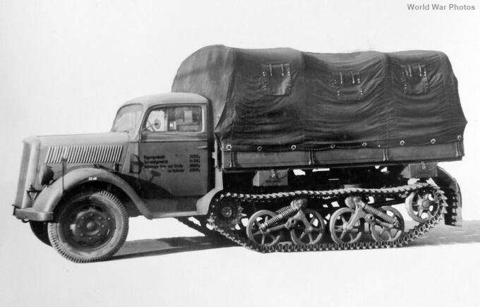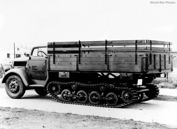 Compared to normal trucks, German half tracks had only a minor increase in rolling resistance of 5–10% because of their light and wet track design. The ¾th track length offered great off-road performance and grip even without powered front wheels. Other nations’ designs often had powered front wheels but also with a shorter track length as compensation. Conversion of trucks to half tracks was also relatively simple; an example would be the Gleisketten LKW Maultier. These often lacked speed in favor of higher gearing for more strength.