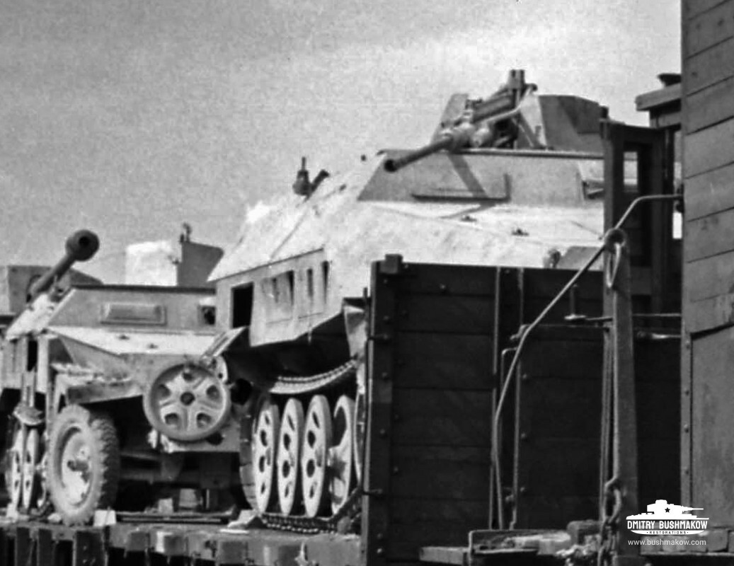 Some vehicles were armed with captured 12.7mm MG 268(r). With the standard armament being an MG 34 or 42 a more powerful HMG can have advantages, while the GP MG is sufficient against even light armored targets with S.m.K.H ammo from close range, a 12.7mm HMG has generally stronger armor penetration with common ammo as well as has a sufficient size to either have an effective small incendiary or high explosive payload. This includes the MG 268(r) which was originally developed as a HMG with primary AA work in mind.