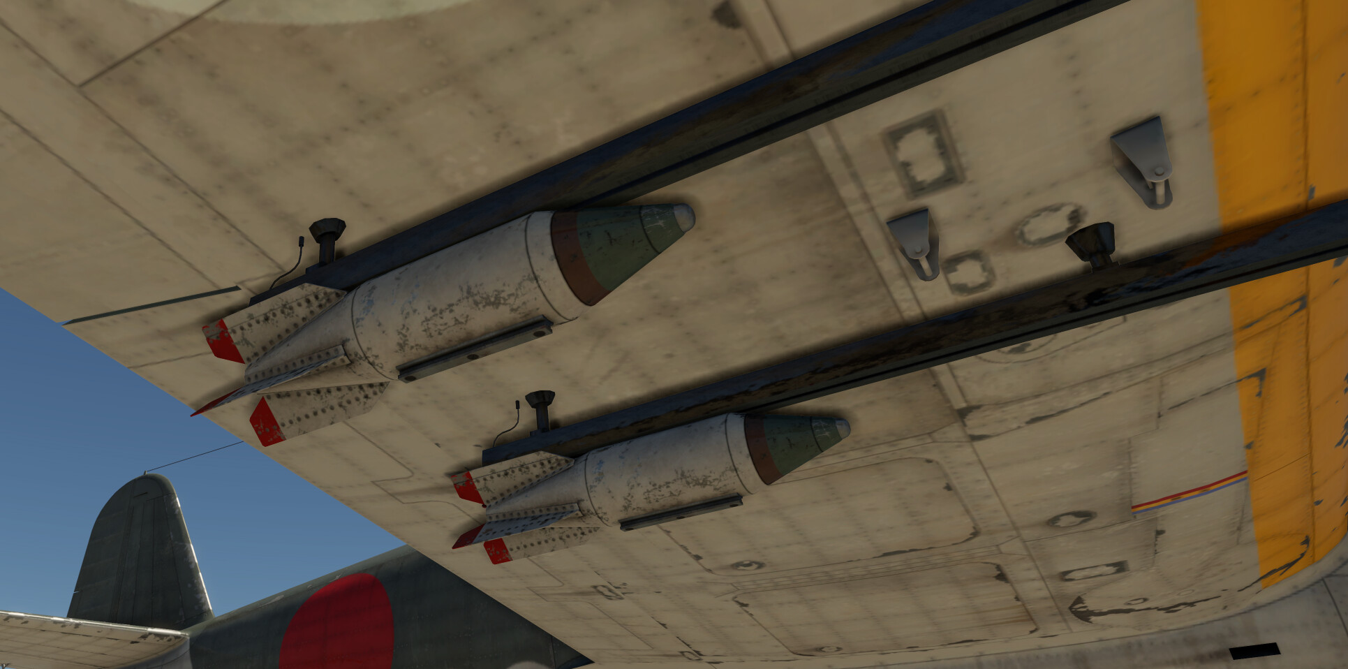 Before I get into recommended loadouts, I'd like to bring attention to the fact that all D4Y bomb bays have a release cradle inside, to allow clearance from the propeller. This delays bomb release by around a second or so. You may need to drop your bombs a little earlier than you may be used to.