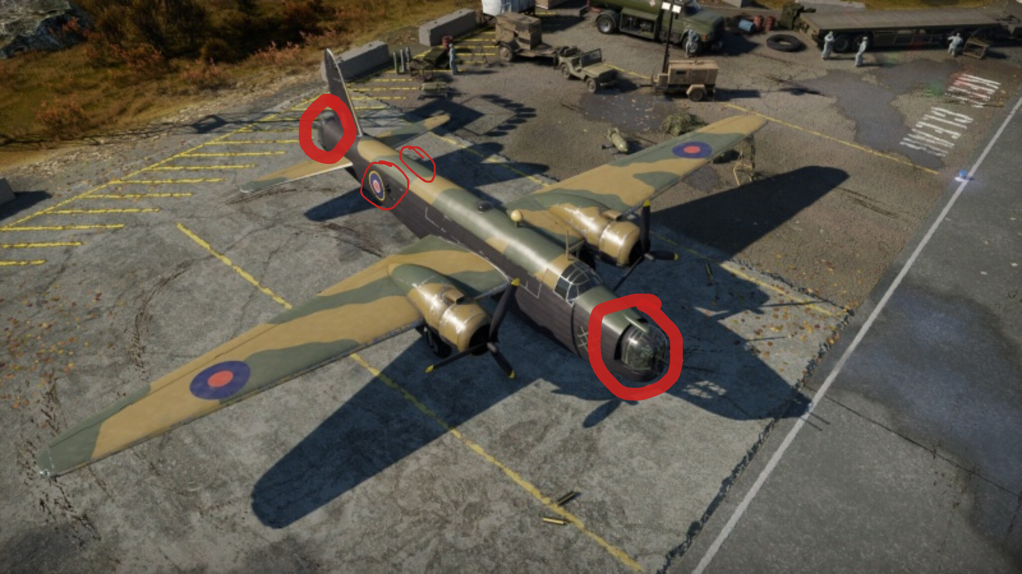 The Wellingtons are a vulnerable bunch of planes. The earlier variants, the Mk Ic and Mk Ic/Late, have no armor protection. Both later variants, the Mk III and Mk X, have one sheet of 9 mm steel behind the pilot’s head, which is useful in keeping the single pilot alive. All Wellingtons possess self-sealing fuel tanks. As previously mentioned, the lack of a co-pilot makes the Wellington very weak to pilot snipes. This is an issue with a lot of British bombers.
