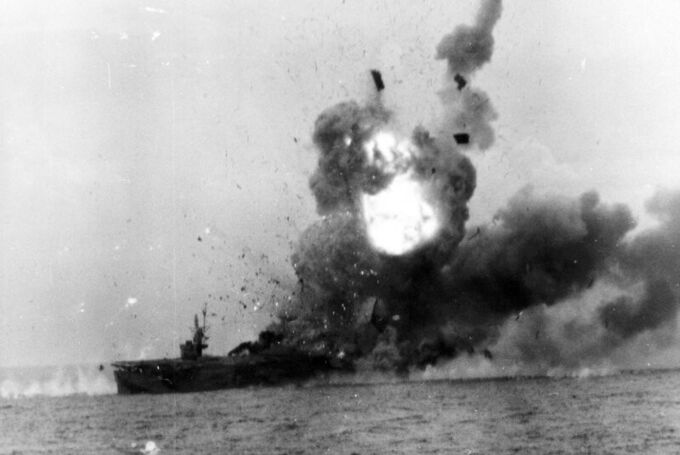 Out of the six, four missed, one struck the Taiho, though not fatally, and Komatsu had stopped one; the one he stopped had detonated the moment he flew into it.