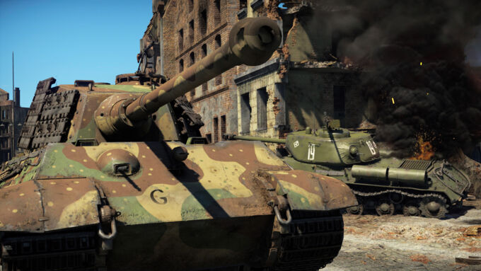 Frontline Brawler: As a heavy tank, the Tiger II has some qualities that make it an intimidating threat in close-quarters combat: thick armor, a powerful gun, good reverse speed, and a quick reload. At the same time, it has many drawbacks that prevent it from being a truly unstoppable force. As previously mentioned, the Tiger II’s large side profile and sluggish mobility make it highly susceptible to flanking attacks. On top of this, the Tiger II’s weak turret front can be more easily exploited by vehicles in CQC.
