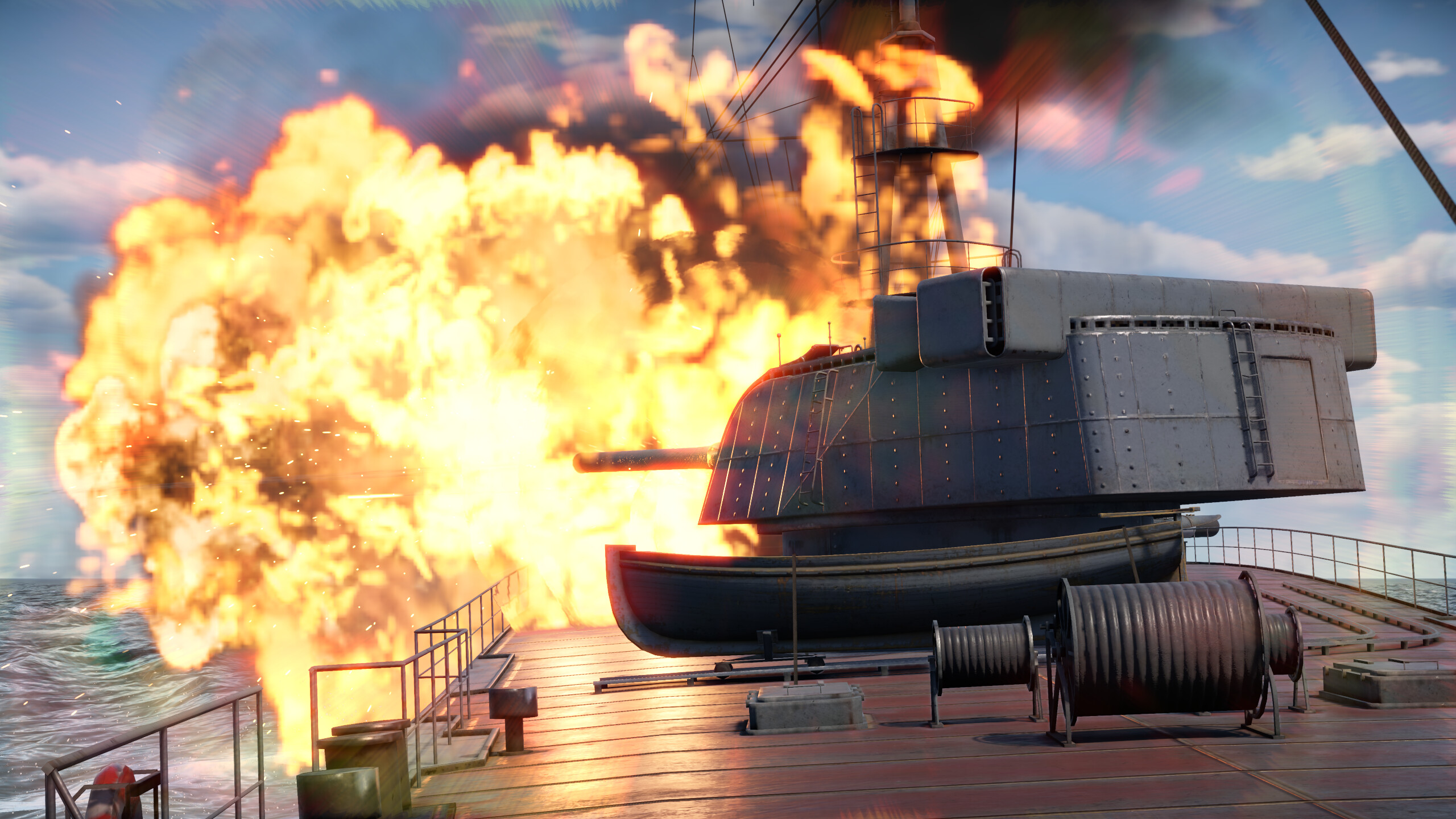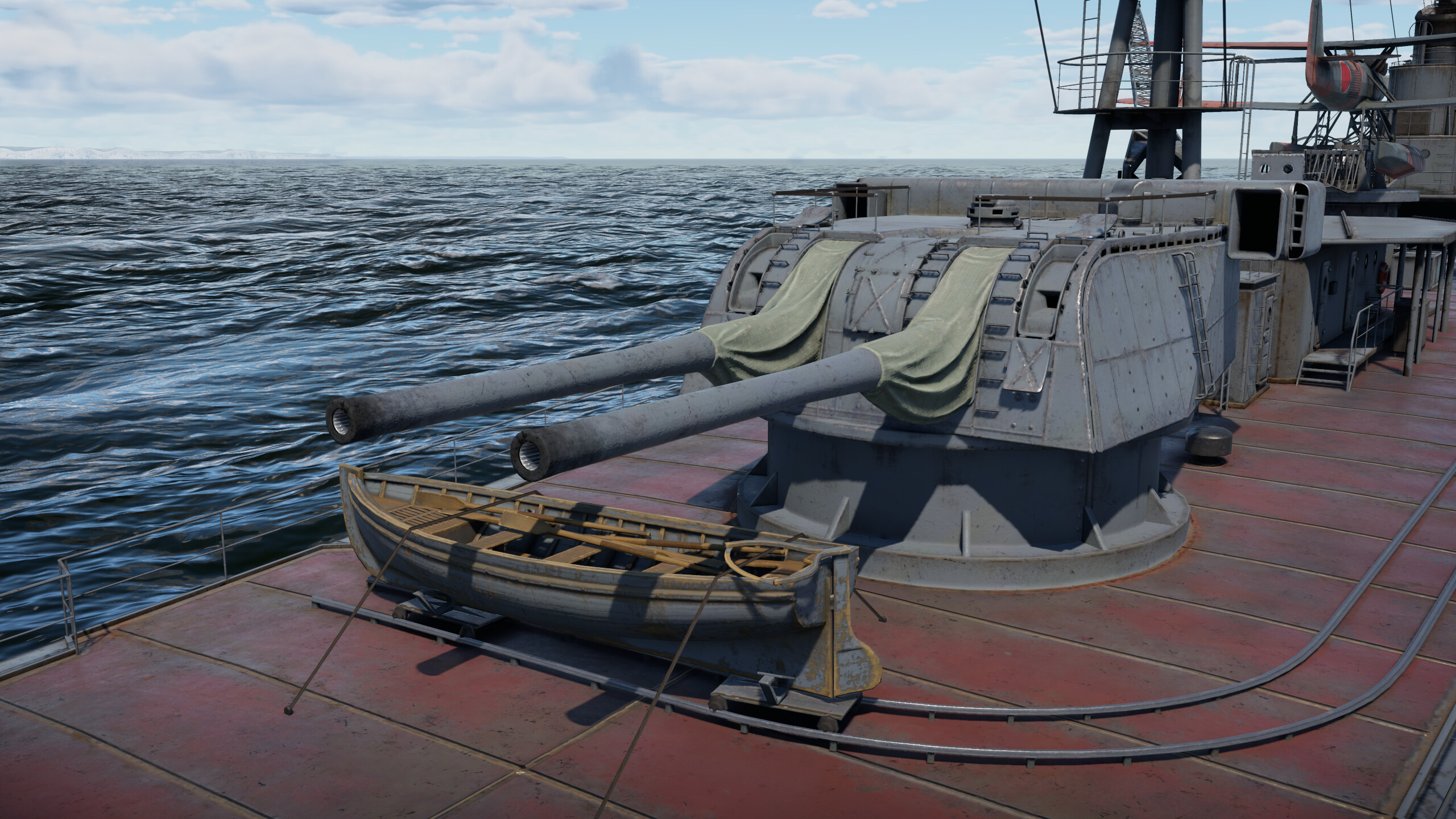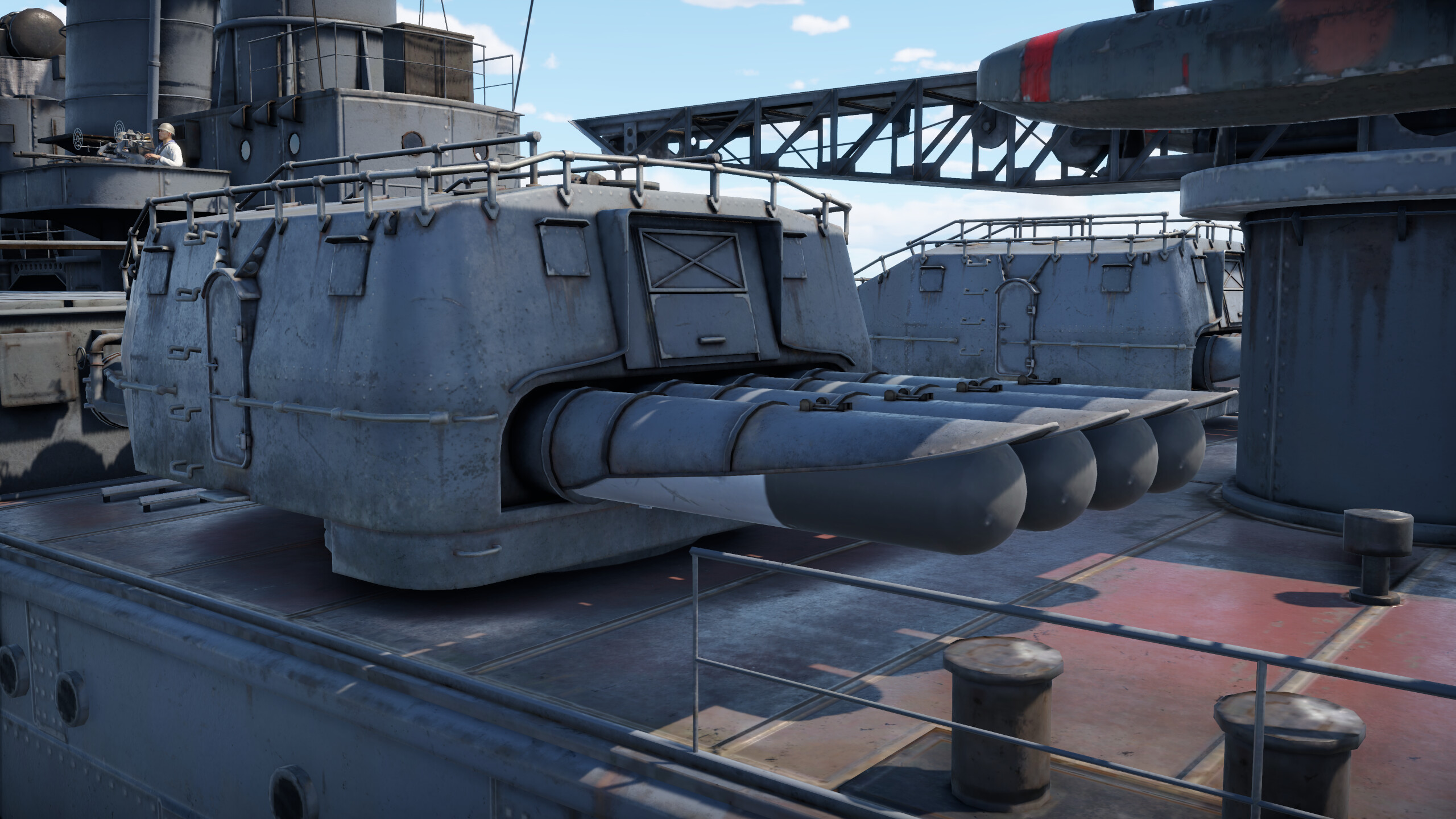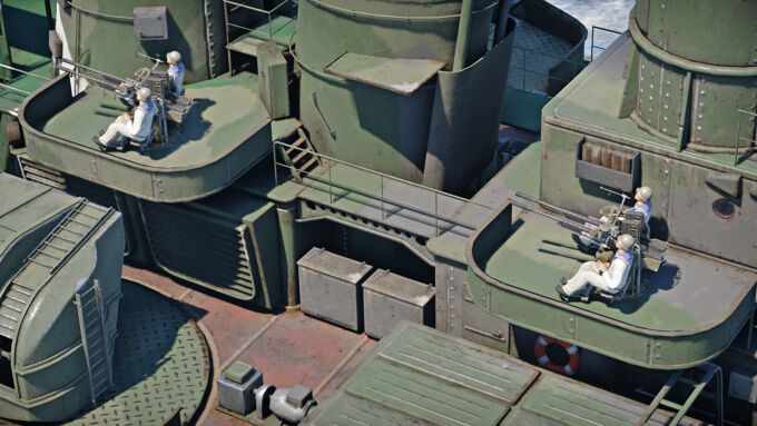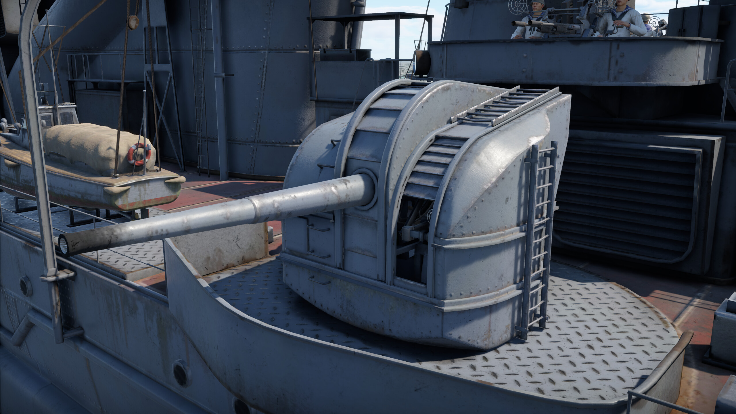 The problem with secondary armament guns is mainly that there are not enough of them. Often the guns do not create the necessary density of fire, while also lacking in accuracy. However, this battery can shoot down a bomber or strike aircraft flying at medium altitude before it gets into a bombing position, as these guns have very good muzzle velocity, but the very small number of them is still a problem.