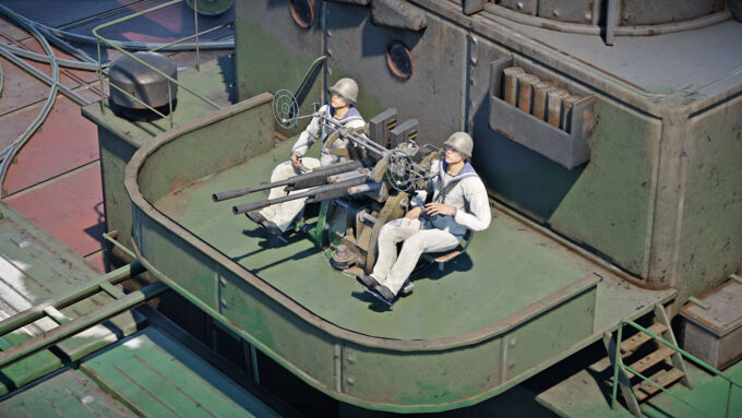 - Two twin 13.2 mm Type 93 machine guns located forward of the bridge navigation platform.