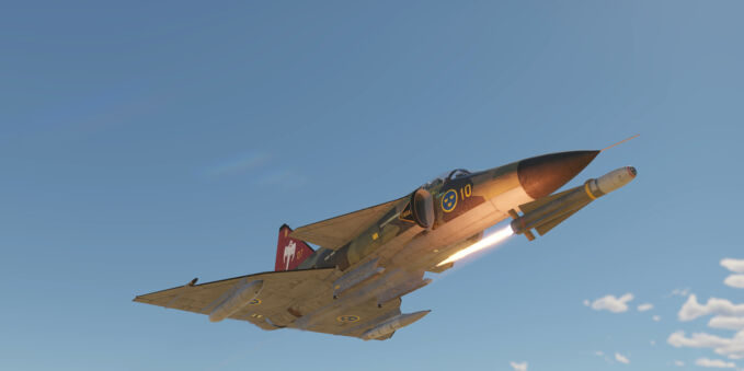 In the 1950s and early 1960s, Sweden needed a strike fighter to replace the aging SAAB 32 Lansen platform, and a more air-to-air combat-focused aircraft to replace the SAAB 35 Draken. SAAB then came up with the Viggen platform and its variants. The JA37 (that we also have in game) is the air-to-air variant and the AJ37 is the ground attack variant, with the “AJ” standing for “Attack Jakt” (strike fighter). Other variants such as reconnaissance, maritime patrol, and trainer jets, also existed. The ground attack variant is the one we will focus on today.