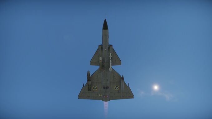The AJ37 Viggen is an exceptional aircraft! Many will find the radar to have a huge advantage over other aircraft, such as the MiG-21. It has many features and loadout options and the flight performance is on par with that of higher tier aircraft. At its B.R. it controls the entire battlefield and can determine a victory or a defeat. The only big downside of this aircraft is that it can only carry so many weapons, with no internal gun or countermeasures.