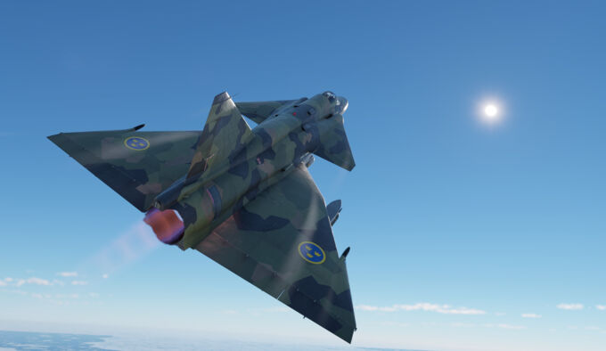 The Viggen was equipped with state of the art electronics, often considered the best of its kind. It would also make use of the RM8 afterburning engine, which is a licensed version of the Pratt & Whitney JT8D-22 that was used on 727 and DC-9 airlines, except it was fitted with a domestically-designed afterburner and thrust reversal. At the time, Sweden was making/converting roads into fully capable runways by expanding width and increasing the length, while still allowing public transportation. It was also fitted with a thrust reversal, which helped validate it for the required short landings the aircraft would need to perform on some of these roads. The aircraft was also fitted with an automated ILS, but this is not modeled in-game.