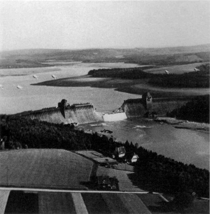 The raid took place on the 16 of May 1943, with 19 Lancasters flying at or even below tree level for hours to reach the targets: the Möhne, Eder and Scorpe dams which supplied the factories of the Rhur Valley with power and water. The Möhne and Eder were successfully breached but the Scorpe was only damaged. 8 Lancasters were lost, some crashing into power cables such was the height at which they were flying. 53 men died and 3 were taken prisoner, a loss for which Wallis felt deeply responsible. The raid, although initially successful, in fact did not have the impact that was hoped. The dams were repaired quickly and most of the casualties caused by the flooding were prisoners and slave labourers. However this feat of daring and near-insanity was a much needed morale boost for the British as well as alarming to the Germans. Many residents of the areas near the dams later recalled the terror of hearing the Lancasters roaring past — not over — the church spires and trees in the villages.