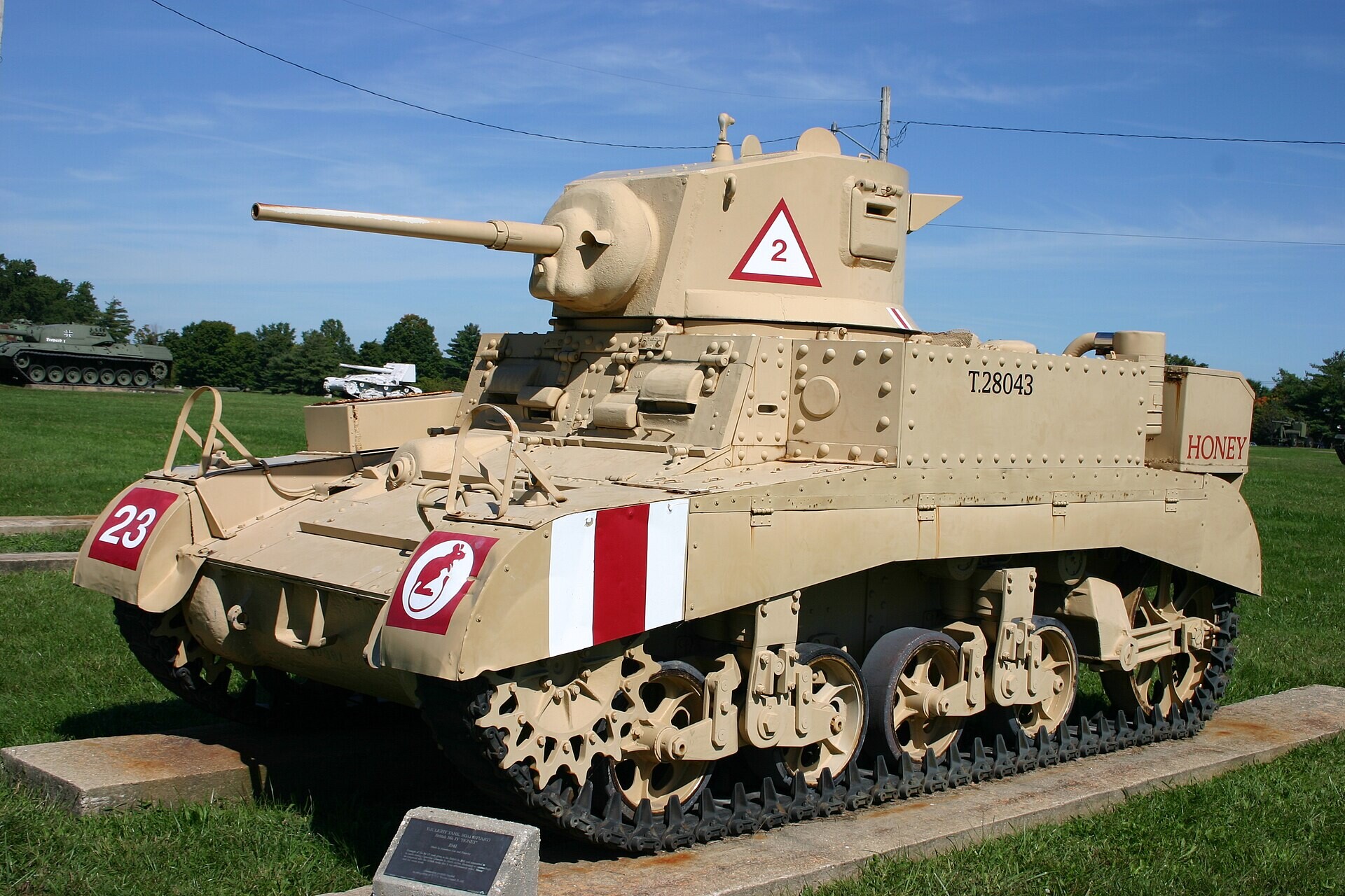 The ubiquitous M3 Stuart — or Honey as it was often referred to in British service — was one of the first and most numerous types to be supplied to British Forces from July 1941. Legend has it that the name Honey was bestowed upon the type by REME engineers who appreciated its reliability compared to some British types. It first saw action in North Africa, where crews used to the fast, manoeuvrable A13 Cruiser tanks found the Honey quite easy to adjust to. The 37mm cannon was very similar to the British 40mm 2-pounder found on many tanks at the time — so was just as quickly outclassed by new enemy Panzer designs.