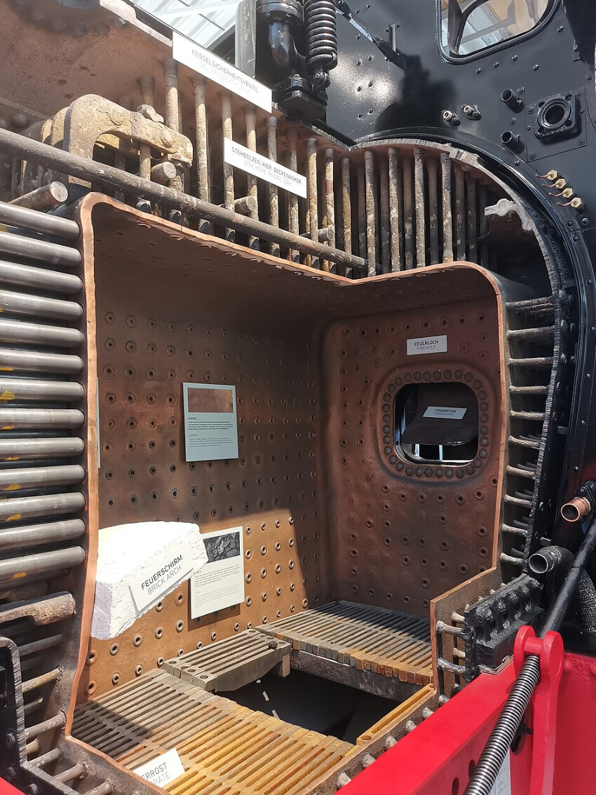 The driver’s cabin also points to a Br 52. If you look at the access where the tender was supposed to be, you can see a circular opening that gave the stoker the space to shovel coal from the tender into the firebox. A circular opening is typical of the appearance of the Br 52 in comparison to the Br 57, which had a driver’s cab that was open to the rear towards the tender, which was adopted for the tank version.