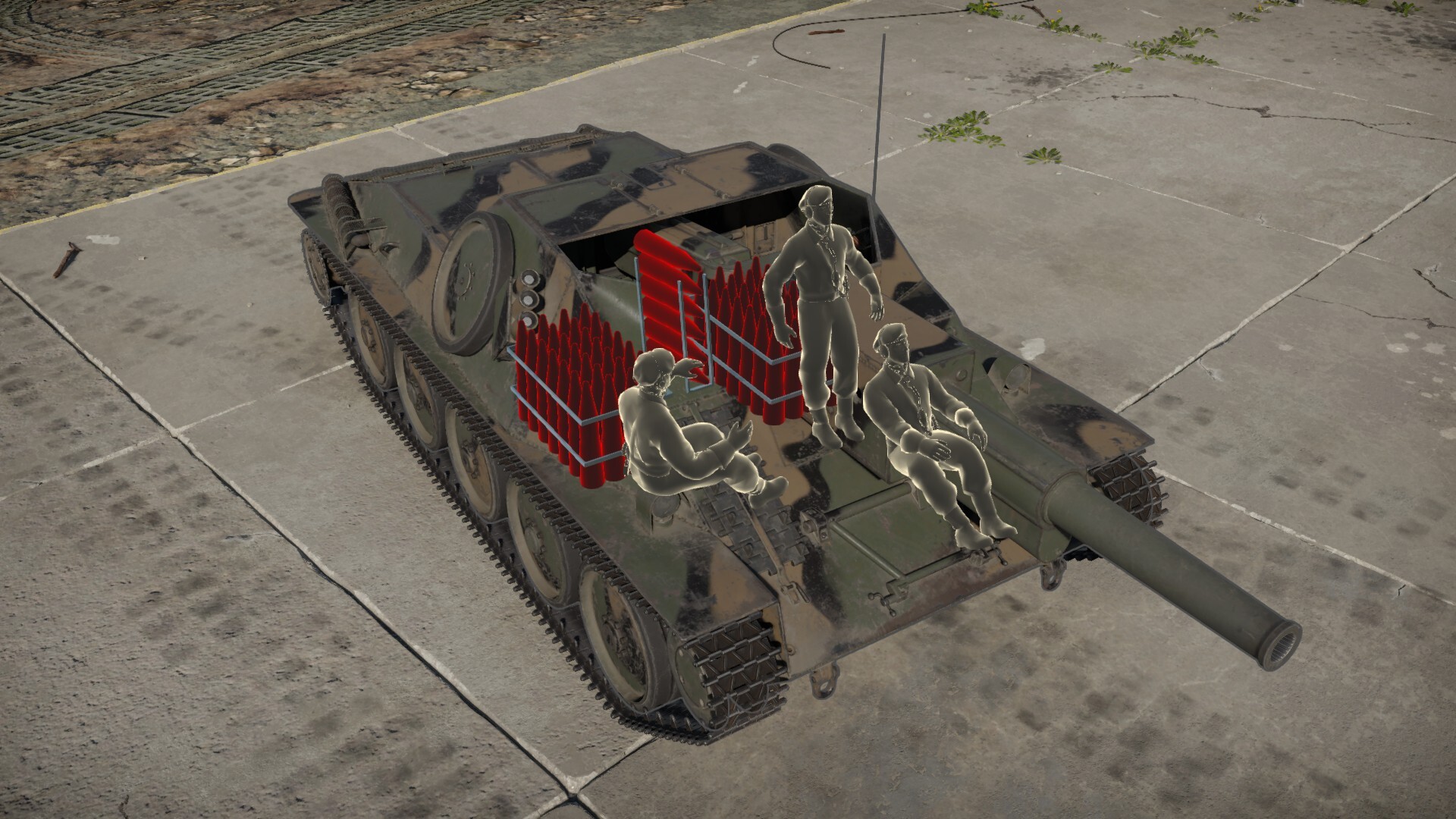 I like to take 40 APCBC rounds along with 5 HE rounds. The APCBC rounds are great for destroying really anything with armor, but for open vehicles like some AA and tank destroyers, load HE. Be very careful when facing AA vehicles that are very exposed, like the Zis-12, since the APCBC tends to go right through thin armor and not explode. Also since the SAV lacks a machine gun, keep HE handy, because AA trucks can be very dangerous.