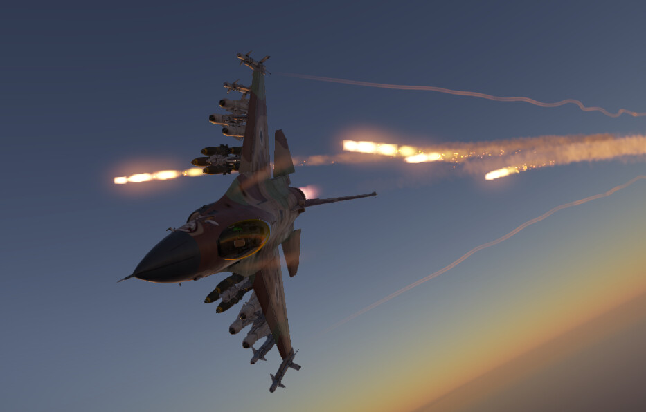 This tactic is pretty similar to the one above, but has a higher risk — and of course, a higher reward. Take off, and climb to a good 7000-10000 meters, while still maintaining some distance between yourself and the front lines. As you will have no terrain to protect you from radar missiles, make sure to dispense plenty of chaff at any lock or launch warning you receive, and turn 90° away from the radar source to notch against PD Radars. Like one might do in a P-47, use the great energy retention of the F-16 to your advantage. Drop down, sling a couple of Python 3s (or AIM-9Ls if the targets are farther away and you are directly above them), and climb back to altitude. Make sure your attack runs last no longer than 1 minute, though, as you will lose significant amounts of energy if the run continues any longer. Repeat this process until the end of the match, and you should get a high amount of kills.