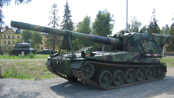 The variant of the Strv 103 that lasted in service the longest was the 15,5 cm bandkanon 1, abbreviated Bkan 1. It was a large self-propelled howitzer that had a very fast autoloader and devastating gun. Its chassis was that of an Strv 103, but was lengthened by one road wheel. It was introduced in 1967 with the base Strv 103, and was retired in 2003, marking an impressive 36 year service life.
