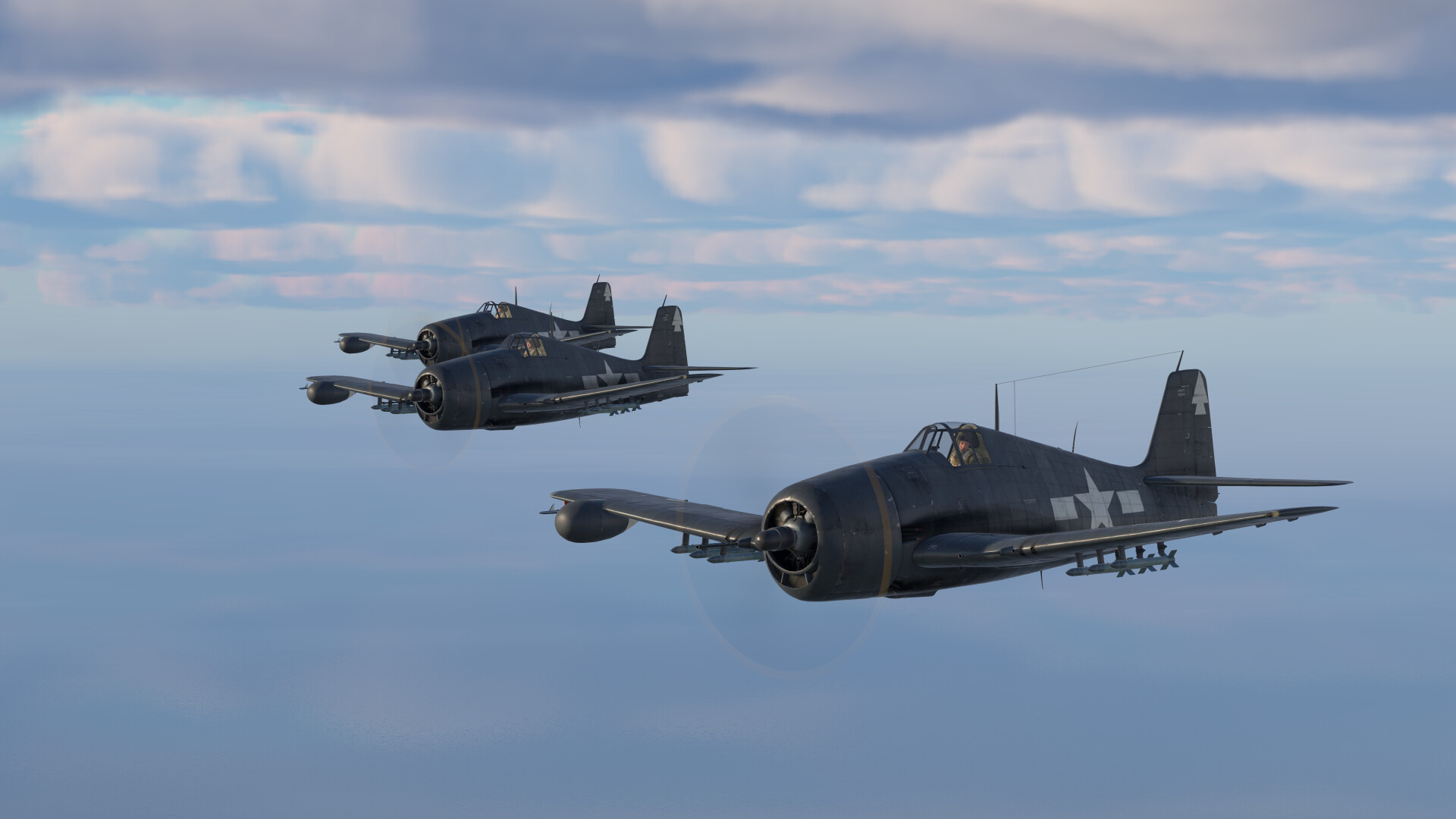 • The propeller pitch will enable the F6F to reach higher top speeds. This is vital during pursuits or diving away; something in which the F6F is great at. They also provide increased thrust/lift and less speed when needed; for example during vertical slow speed dogfights.