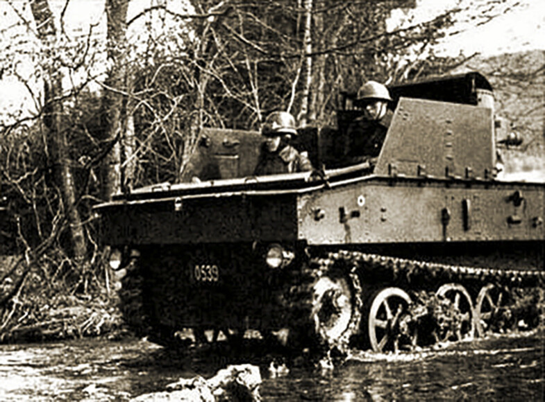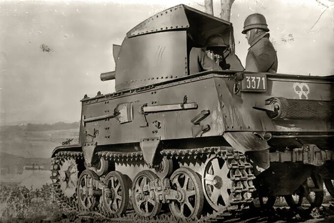 Among the few Belgian machines that could be considered true assault tanks were the twelve Renault ACG 1s, which were equipped with a C.47 F.R.C. Mod.31 cannon and featured a fully enclosed armored combat compartment. These tanks, part of the cavalry, were the only ones that could be classified as full-fledged assault tanks. The army also had another tracked armored vehicle, the T.15. The T.15 was a license-produced Vickers Carden Loyd Light Tank Model 1935 with a custom-built belgian conical turret. While equipped with a 13.2 mm Belgian-produced Hotchkiss machine gun capable of engaging light tanks, the T.15 was weakly armored and lacked offensive power. Like the Renault ACG1, the T.15 was officially designated as an armored car, although in reality, it functioned more as a light reconnaissance tank. Until 1936, Belgium was allied with the Third French Republic and the United Kingdom. However, it declared neutrality again after that, despite Adolf Hitler having come to power in Germany three years earlier and the German remilitarization of the Rhineland on March 7, 1936, in violation of the Locarno Treaties.