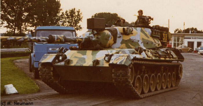 In 1967, Belgium ordered 334 Leopard 1 A1 tanks (3rd and 4th production lots) to replace the M47 Patton. The Leopard 1(BE) is largely identical to its German counterpart but features modifications such as FN MAG machine guns, different stowage boxes, and, from 1974, a fire control system developed by SABCA/Cobelda (Compagnie belge d’électronique et d’automation). This system includes a laser rangefinder, an analog computer, and a crosswind sensor. These upgraded tanks are officially designated as “Leopard SCT” (Système de Conduite de Tir — fire control system). Ten of these tanks were later converted into training tanks, while nine served as the basis for the Leguan bridge-laying tank. These leopards served together with the Gepard B2 variant in the BSD. These Loepards were supplemented by M113 IFV’s, AIFV-B transports and a very large fleet of CVR (T) variants.