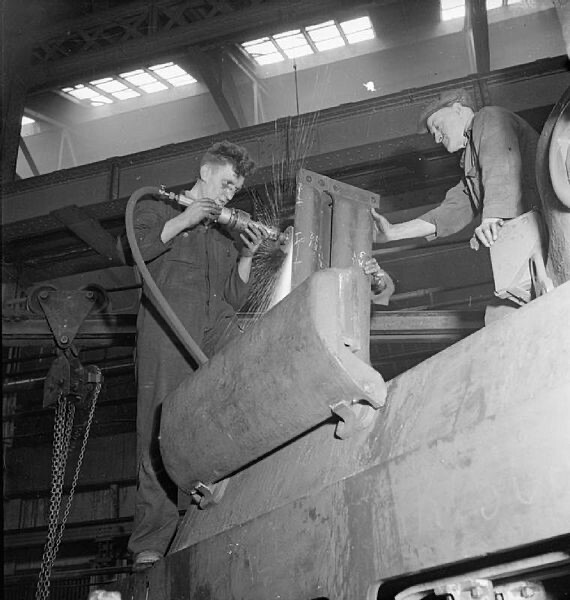 Production of the Matilda was a complex process due in part to both the front of the hull and the entire turret being one-piece cast units. The front of the hull in particular caused problems as often parts of it were thicker than required when the part came out of the mould, so had to be found down, a laborious task which required skilled workers. Part of the reason the Valentine replaced the Matilda was due to it being easier and cheaper to produce. Some of the manufacturers of the Matilda included Harland and Wolff in Belfast, a company best known for producing the SS Titanic of iceberg-hitting fame. By the time production ceased in 1943, 2987 Matilda IIs had been built.