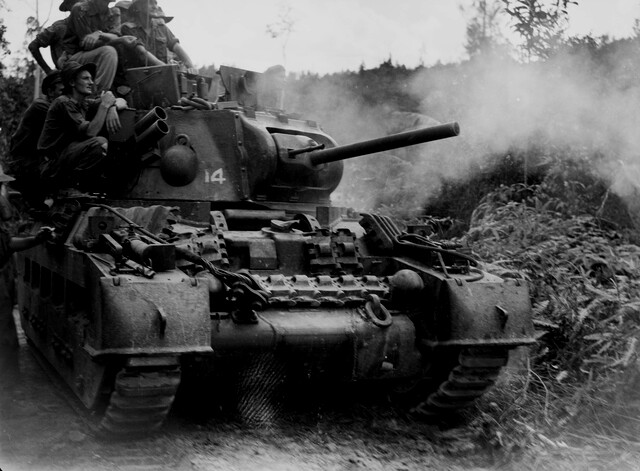 In the Far East, the Matilda’s armour was both a benefit — as the Japanese lacked almost any weapons capable of penetrating it — and also a drawback as the oft-mountainous terrain was almost impassable to the heavy tanks.