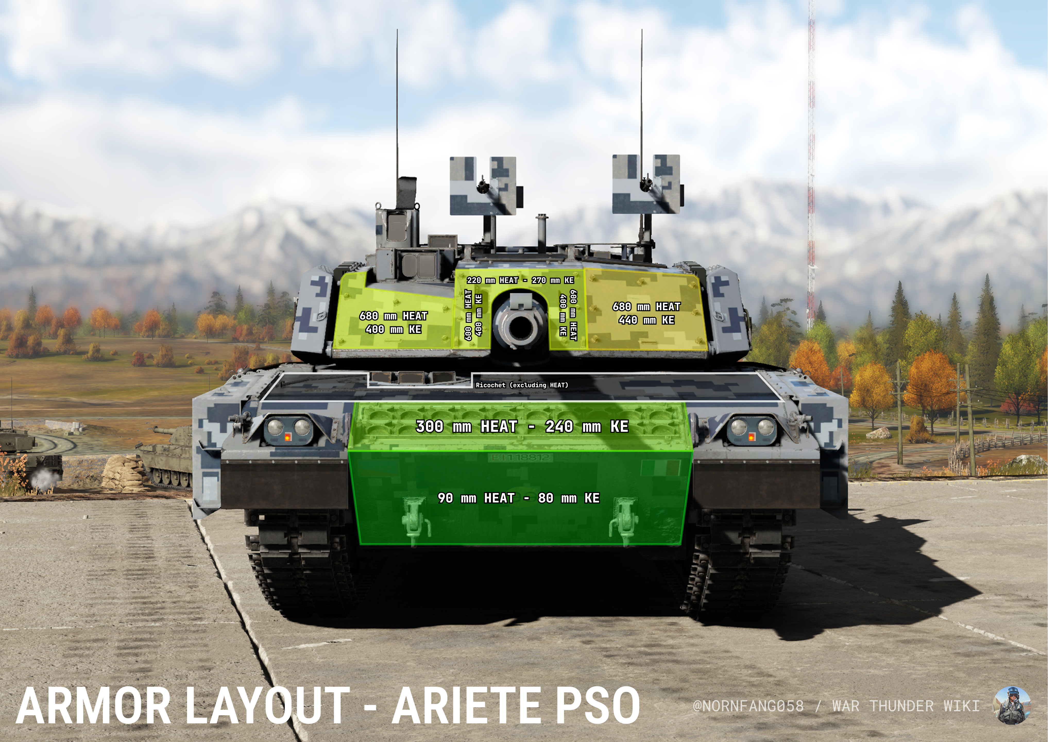 The Ariete PSO (and the other three Arietes) are notorious for having the least effective armor amongst all MBTs in the game due to their reliance on spaced armor and minimal usage of NERA composites.
