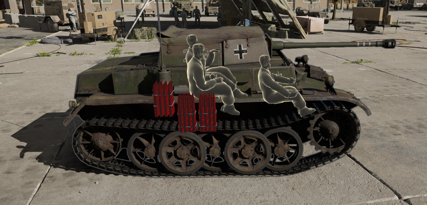 The internal layout of the Pz.Sfl.Ic does not differ too much from other German light and medium tanks at its Battle Rating. Due to its size, the interior of the vehicle is rather spacious, though this should not be interpreted as giving it any notable survivability. The vehicle’s poor armor, combined with the fact that two of its three crew are positioned in the turret means any penetrating hit to the turret will most likely be fatal.