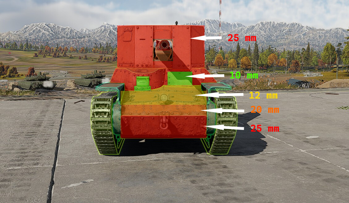 | Powerful APHE shells. | Casemate tank whose gun has limited horizontal firing arcs. |