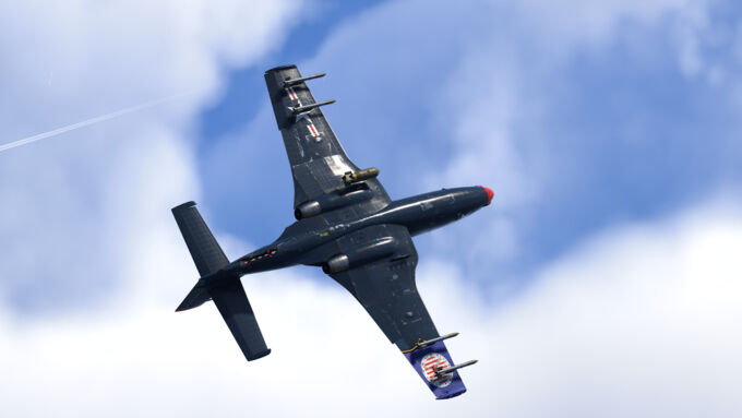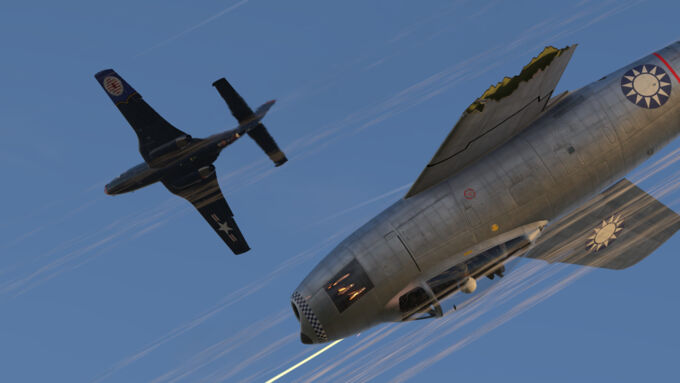 With that out of the way, the aircraft’s performance is commendable compared to other aircraft of its rank. With it being a carrier-based jet fighter, it is slightly on the heavier side weighing in at around 6,700 kg (14771 lb) with 20 minutes of fuel however it does compensate with impressive engine thrust compared to similar aircraft. The maneuverability is also decent: at low and medium speed it can give a hard time to jets with swept wings and some others like the F-84s. The flaps also can decrease the turn time by 20% but their drawback is their quite low speed limit of 325 km/h before they refuse to extend.