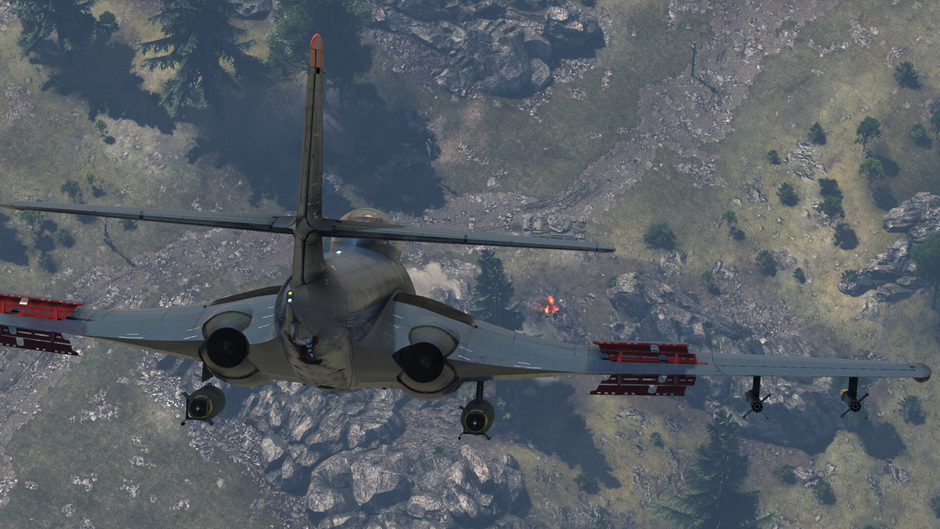 The aircraft features pretty good survivability, typical of American aircraft, with a 12.7 mm steel plate behind the pilot’s head, an 8 mm plate behind the pilot’s back, and 38 mm of armoured glass angled back at 58°. It does not have EFS or any form of countermeasures; however, missiles are not commonly encountered. Fuel tanks are placed in the middle of the fuselage, with two smaller ones on either side of the engines in the wings. All are self-sealing but lack a neutral gas pressurisation system.