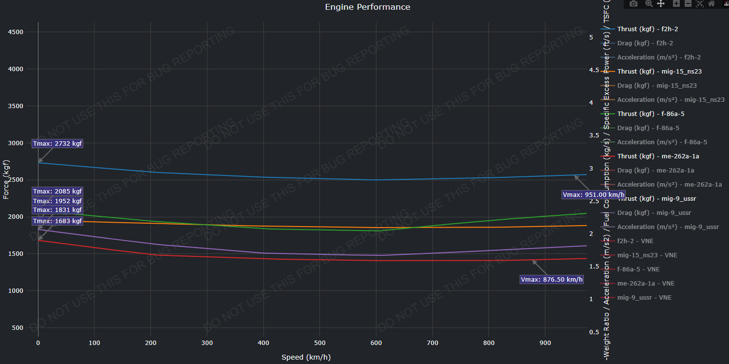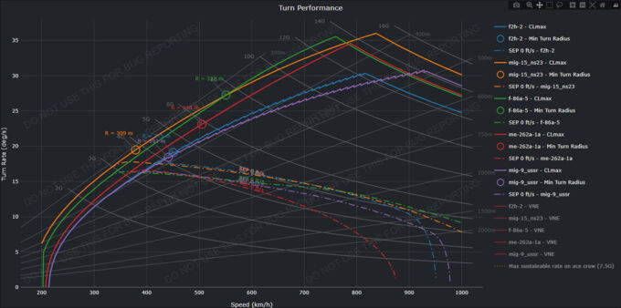 Once in combat, awareness should be maintained of aircraft such as Meteors (specifically the Mk 3), Vampires, Komets, and manoeuvrable Soviet aircraft such as the Yak-23 or La-15, as they generally outperform this aircraft. Any opportunity while they are distracted should be taken to potentially damage and hamper their performance. Most dogfights should be taken into the vertical, using loops or spirals to stall the enemy and gain an easier shot. Head-ons are also viable due to the high-velocity cannons, but they should be taken at one’s own risk.