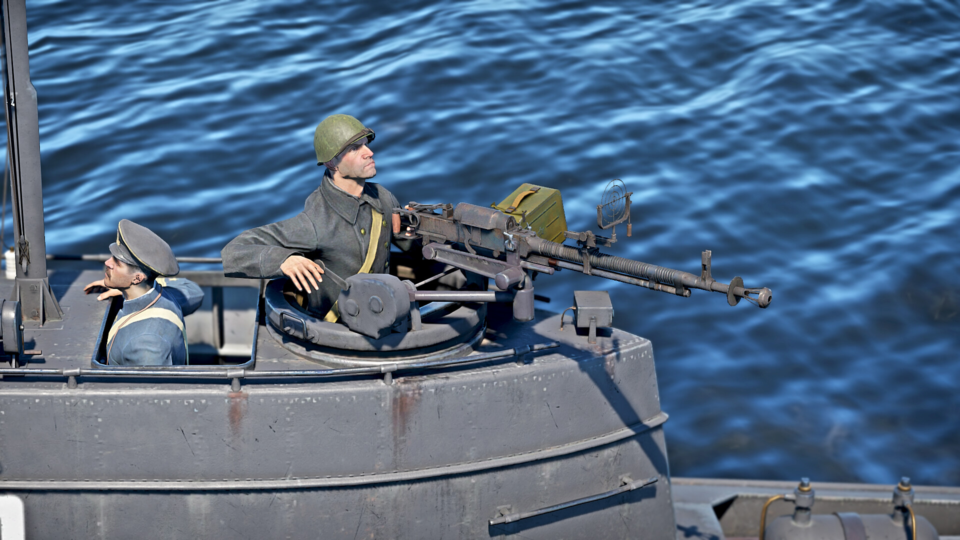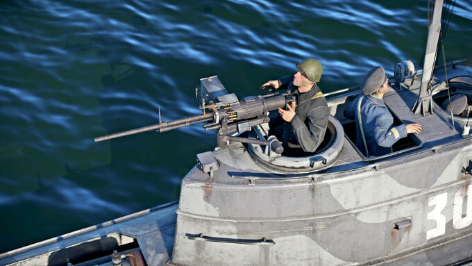 Both G-5s are armed with two 533-mm 53-38 torpedoes located in the stern. The torpedoes are ejected backward from the torpedo tubes, pass under the boat, and head for their target. Each 53-38 torpedo contains 300 kilograms of explosives, can travel three kilometers, and moves at a fairly low speed of 56 kilometers per hour. Such torpedoes can hit and sink a sub chaser or other heavy boats, but against torpedo boats and alike, you have to rely on luck. Against large destroyers they can inflict significant damage but are unlikely to sink a target.