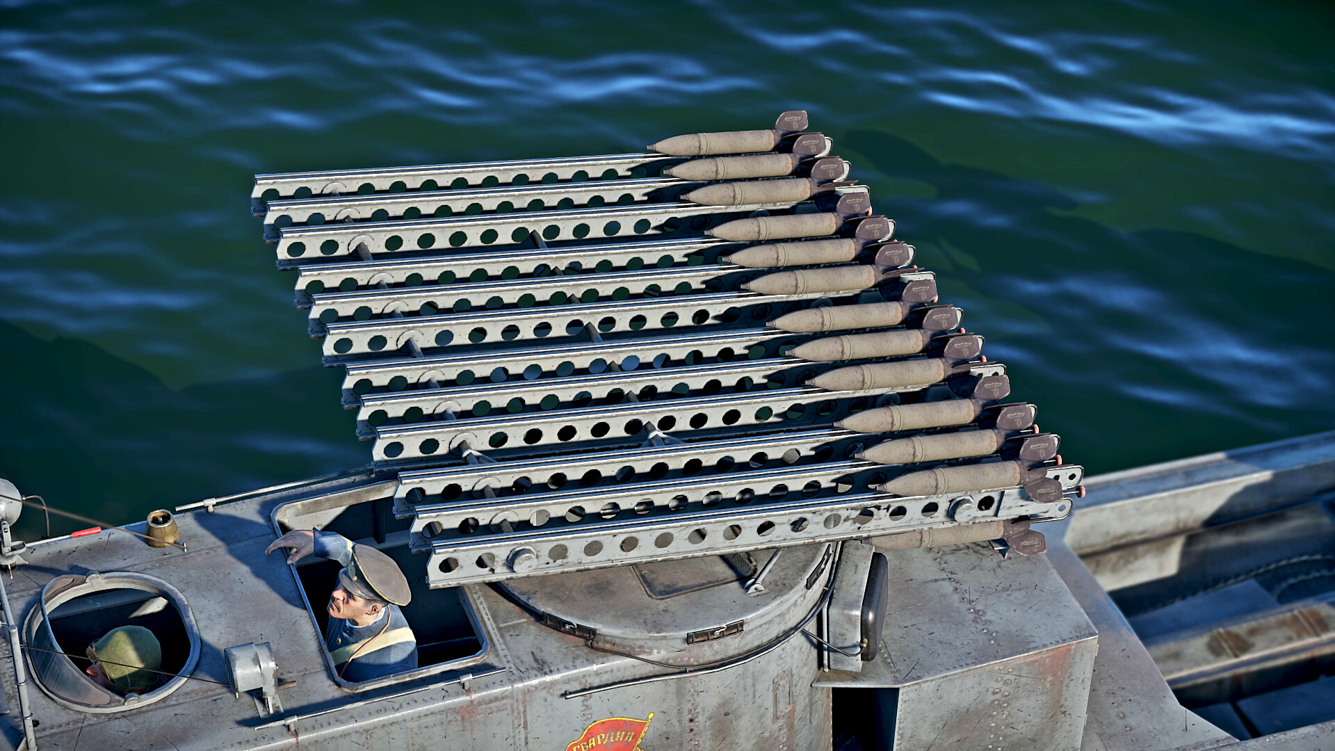 For offensive purposes they were first installed on boat No. 175 in June 1942. It was a field-made six-round mount installed on the wheelhouse. It was fixed in direction, but the vertical angle could be changed. From August to November of that year, Artemzavod created the RPU-6 mount, which had horizontal aiming capability and simpler firing, among other improvements. It was soon installed on many Black Sea Fleet boats.