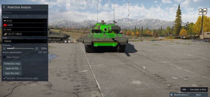 | 3BM46 | APFSDS | 531 | 1700 m/s | The final shell you unlock, and your main anti-armour shell. Very useful in most situations against MBTs, might overpenetrate light vehicles. |