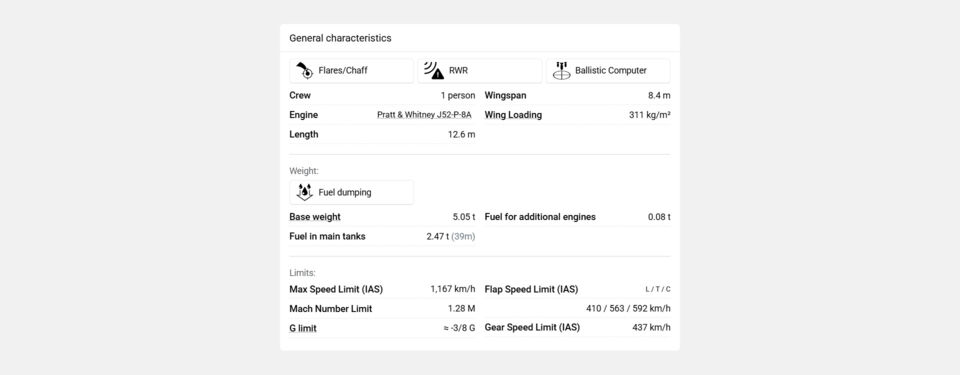 New data has also been added to the vehicle comparison section, and some old parameters have been expanded upon (e.g., displaying suspended weapon options).