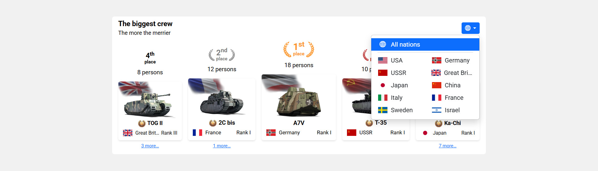 Several hundred new articles have also appeared on the wiki during this time. Many articles on game mechanics have been published or revised. Pages with all available frames and profile backgrounds have been added, as well as dozens of interesting articles on gameplay and the history of military vehicles.
