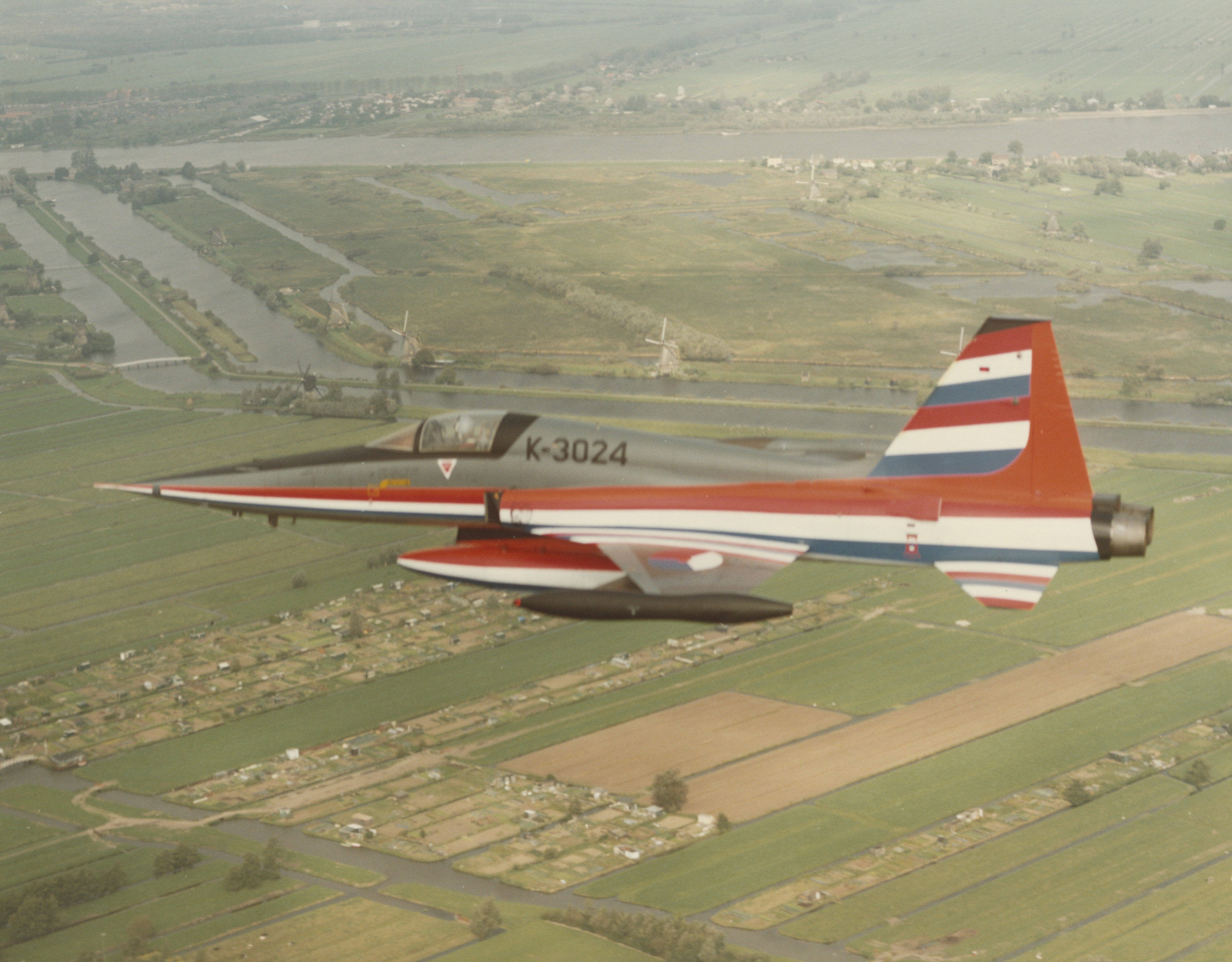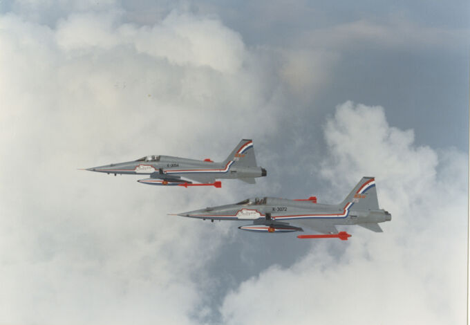 One of the most memorable public roles of the NF-5A came in 1988, when the Royal Netherlands Air Force celebrated its 75th anniversary. Within 314 Squadron, the idea emerged to form a dedicated two-ship aerobatic team that would highlight the aircraft’s agility and provide a KLu presence on the European airshow circuit. With approval from Air Force Command, the Netherlands Aerospace Centre (NLR) assisted in calculating the display parameters and safety margins for synchronized maneuvers.
