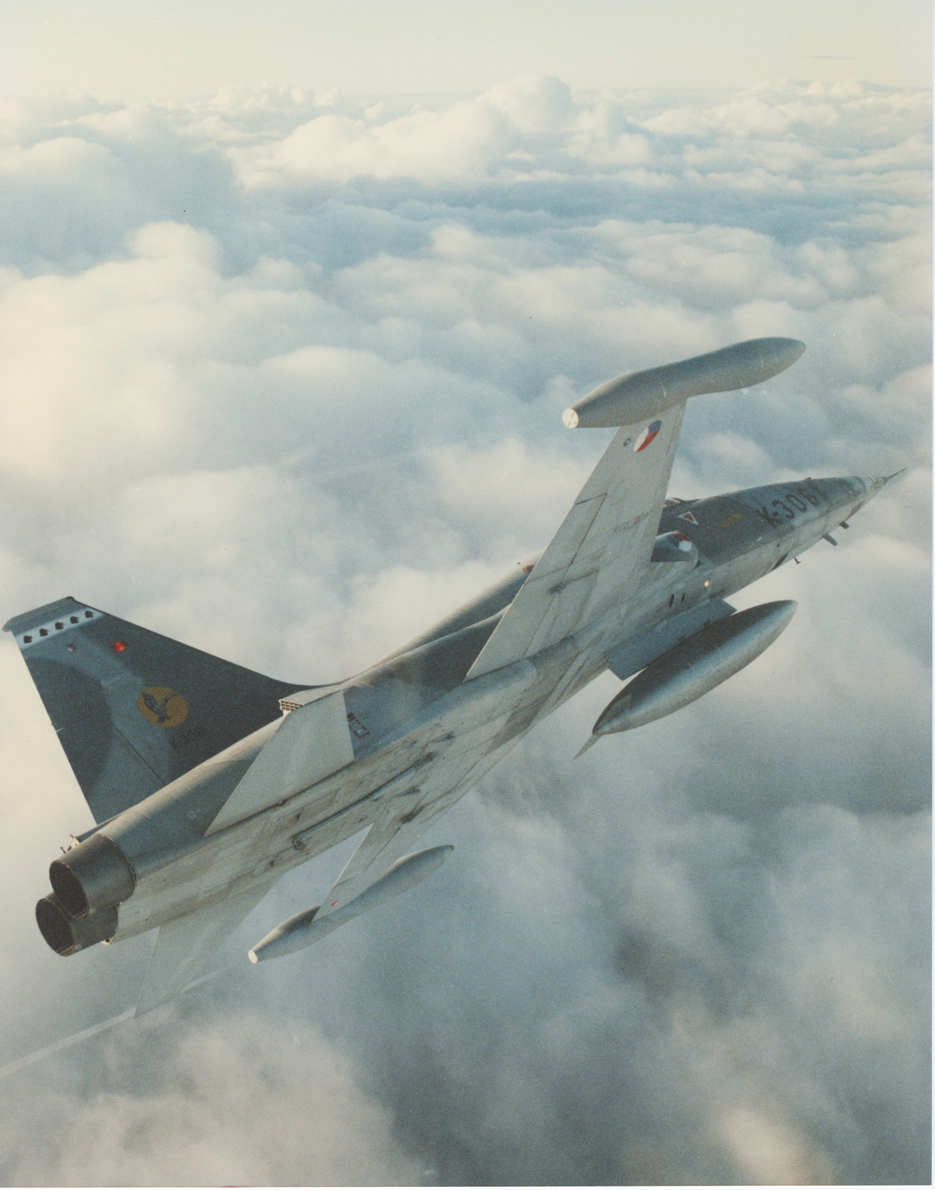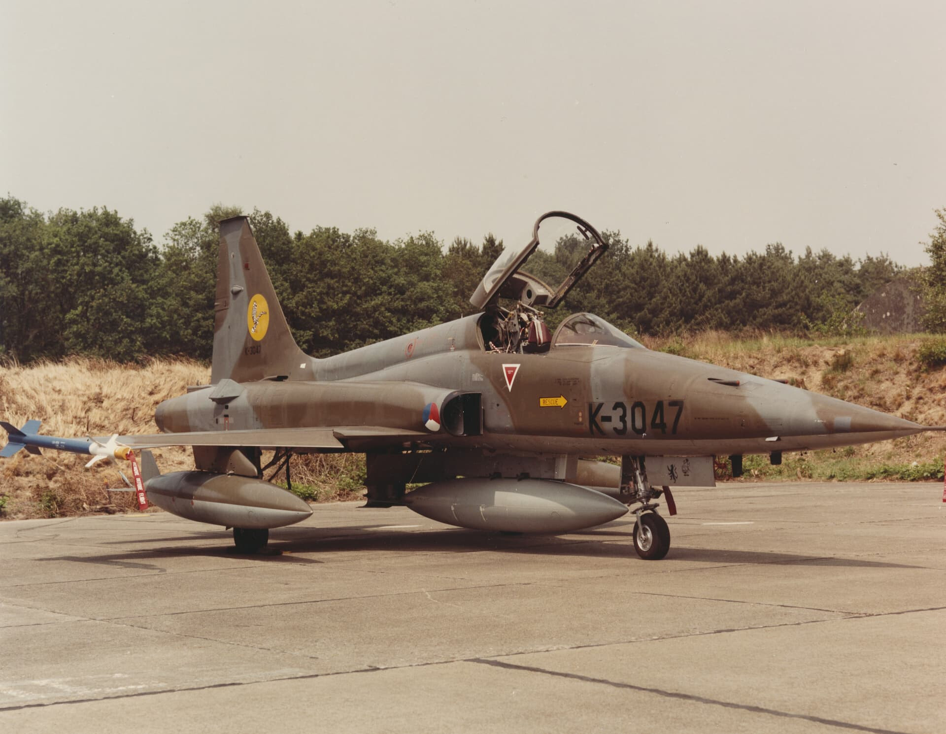 Although provision existed for mounting AIM-9 Sidewinder missiles on the wingtips, the Royal Netherlands Air Force originally did not wire the aircraft for guided air-to-air ordnance. Only later, particularly when temporary air defense duties were assigned in the early 1980s, were the aircraft modified to support and operationally employ the AIM-9P, AIM-9J, and AIM-9N variants.