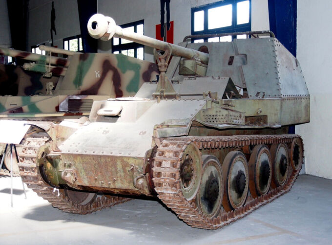 During Operation Barbarossa, Germany’s invasion of the Soviet Union, the Third Reich ran into Russia’s secret weapons: the T-34 and KV-1. While German engineers came up with move advanced tanks to combat Soviet armor, a quick solution was put together to face the Russians on somewhat equal terms. This stopgap would be known as the Marder.