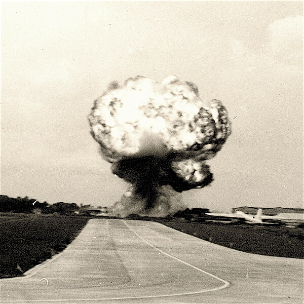 Photograph taken from outside the perimeter fence of Gosselies Airport at the moment of the crash of F-104G FX-66 on 18 August 1964. The photographer was 14 years old at the time (Ranter, n.d.).