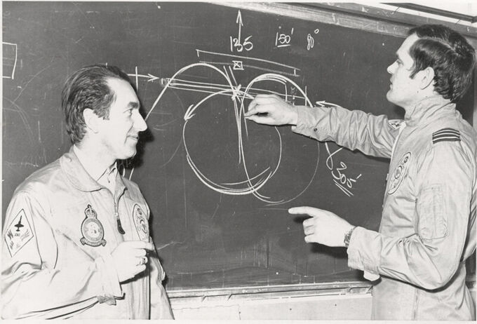 Captain Steve Nuyts and Warrant Officer Palmer De Vlieger discussing their flight plan (Hangar Flying, n.d.).