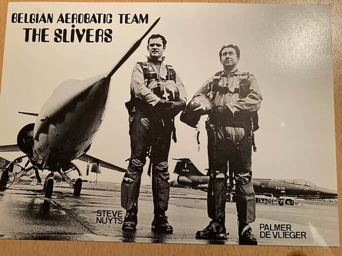 One of the earliest Belgian F-104 pilots, Warrant Officer (later Adjutant Chef) Palmer De Vlieger accumulated more than 2,000 hours on the Starfighter and was widely respected for his smooth formation flying and discipline. His role was as wingman in the Slivers duo.  (Aerobatic Teams, n.d.).